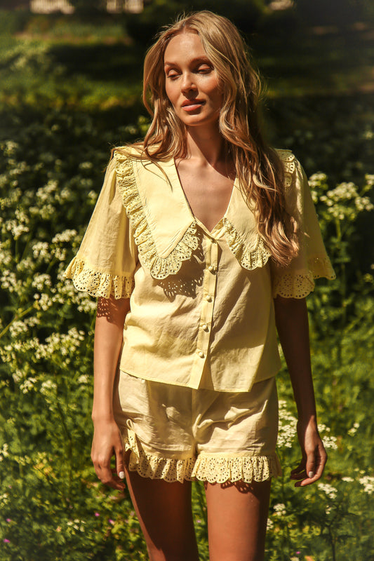 Luna Lemon Broderie Anglaise Cotton Set