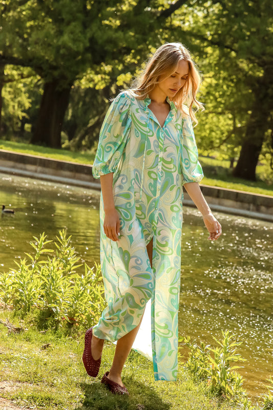 Nelda Silk Green Paisley Dress